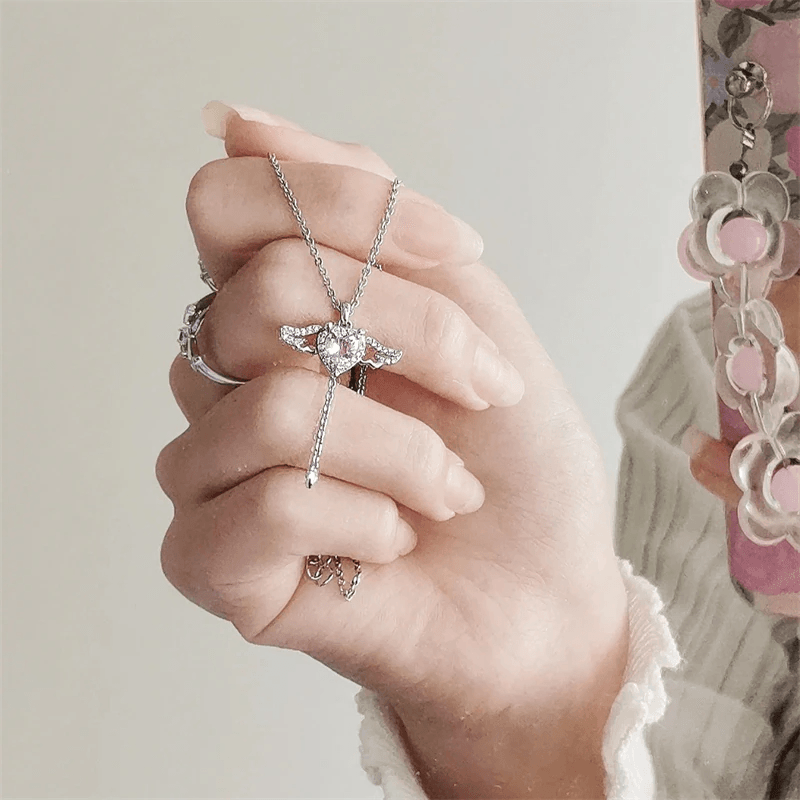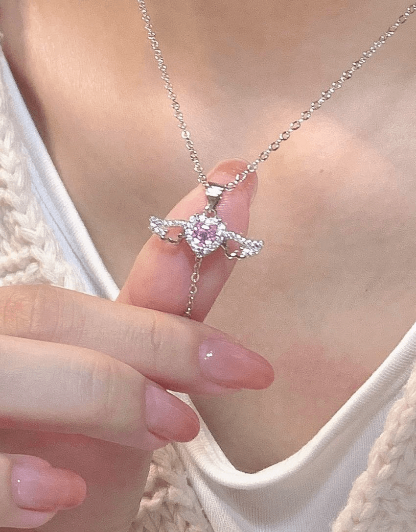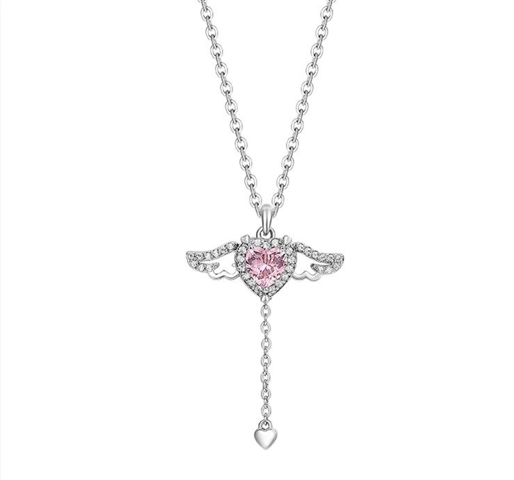 This one-of-a-kind piece features a heart with wings design that's sure to capture the attention of anyone who sees it. But that's not all - there's a small chain hanging from the bottom of the heart that, when pulled, causes the wings to flap as if the angel is taking flight. It's a truly mesmerizing and enchanting sight.