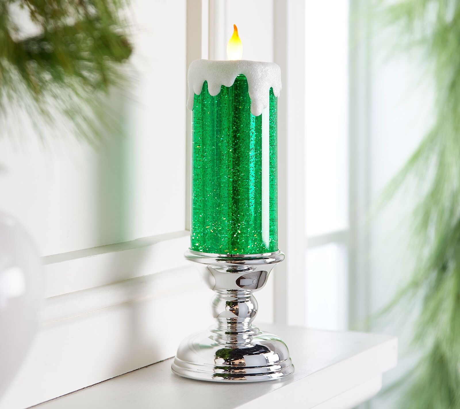 Color Changing: As the water swirls around, a color-changing LED illuminates the water to create a dazzling festive feature. The colors change slowly between green, yellow, red, pink, transparent, and blue. Whilst the replica flame glows a flaming orange color.