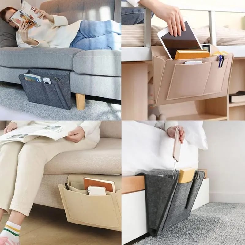 All Within Arms Reach. The bedside pocket can store all of your belongings together by your side while on a bed, sofa, or desk which has a safe and standard place, and no more lost things. More strong and durable, hold heavier things, and will not be deformed